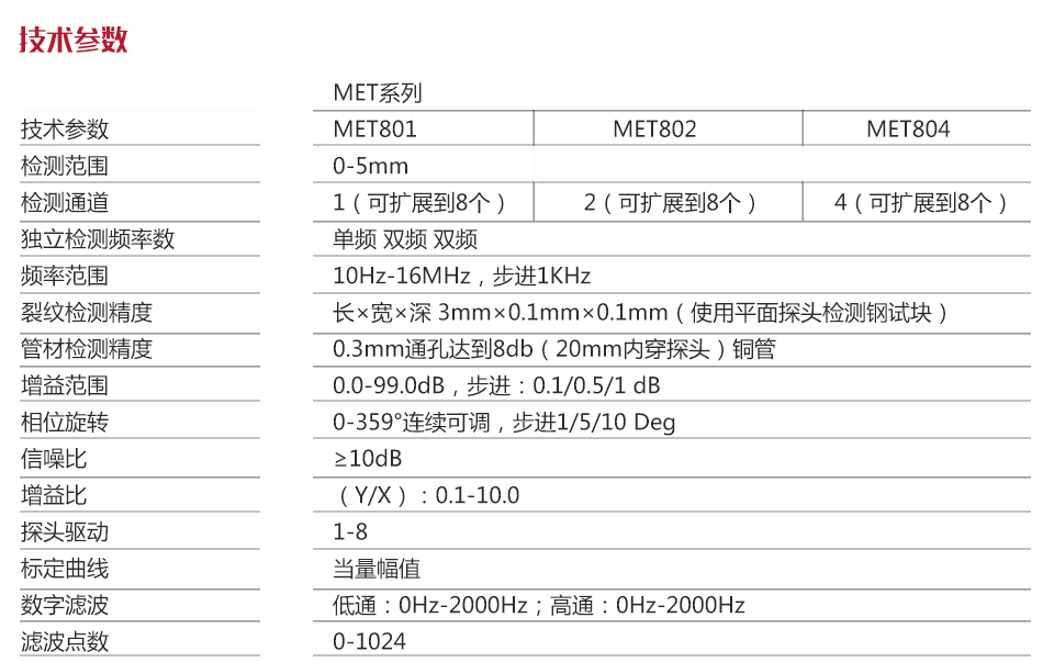 | 技術(shù)參數(shù) | MET801 |