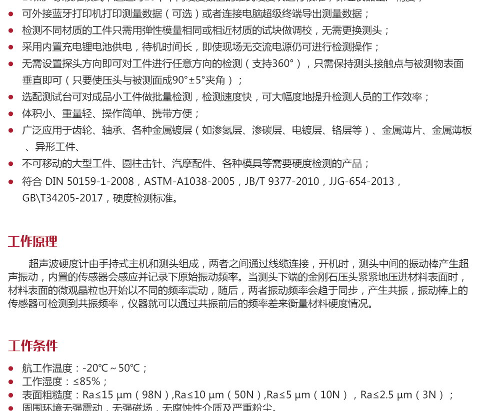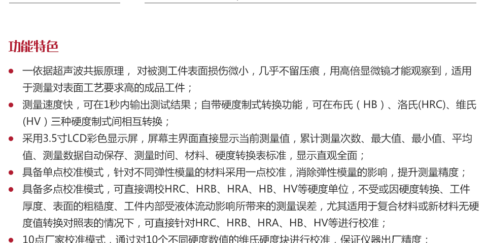 儀器特點(diǎn)依據(jù)超聲波共振原理,對(duì)被測(cè)工件表面無壓痕損傷,適用于測(cè)量對(duì)表面工藝要求高的成品工件;
