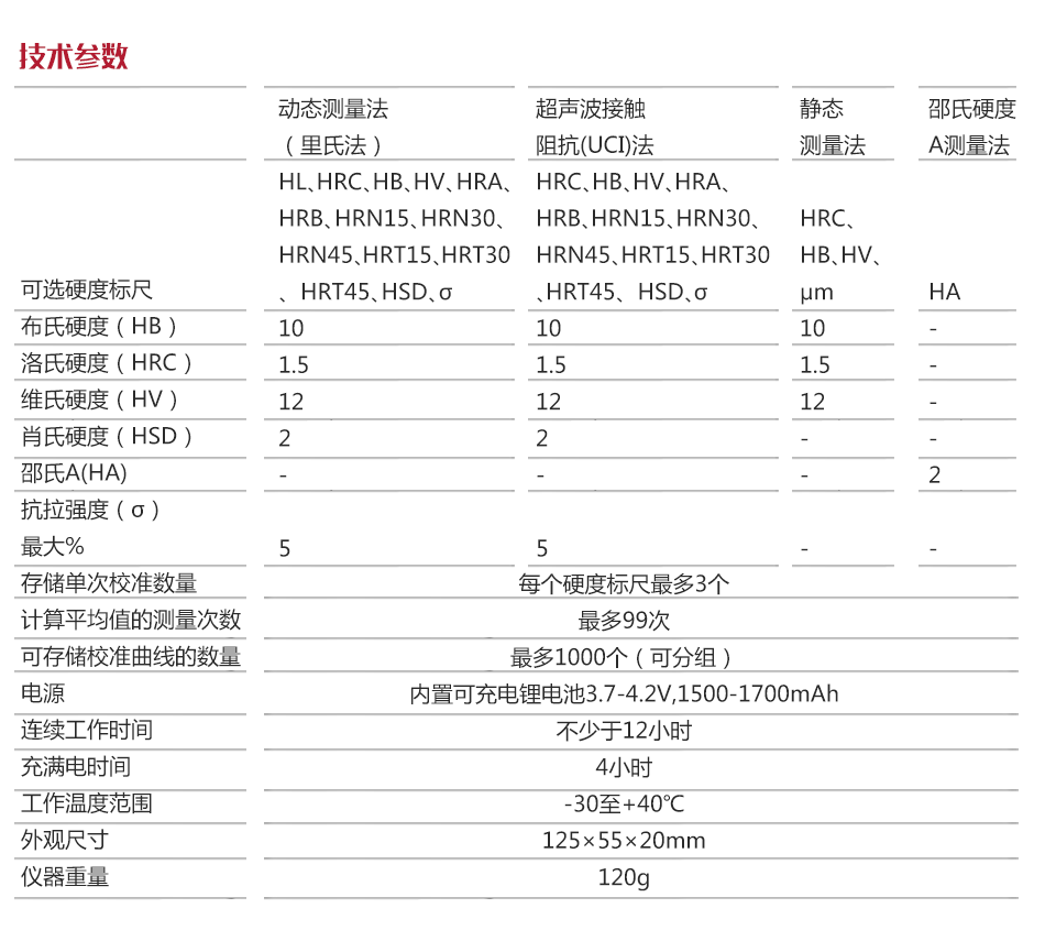 儀器特點?基于3種測量方法,可用于各類金屬和塑料硬度及抗拉強度σ測試;