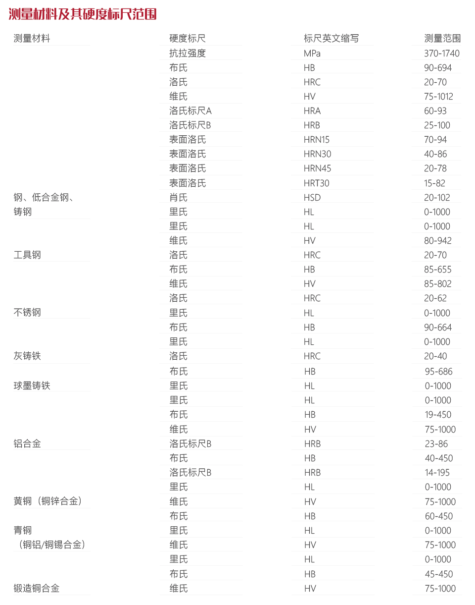 ?可將測量結(jié)果換算成符合ASTM E140和ISO 18265的標準硬度標尺。