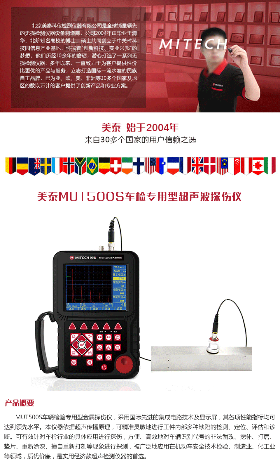 產(chǎn)品概述MUT500S車輛檢驗(yàn)專用型金屬探傷儀,采用國際先進(jìn)的集成電路技術(shù)及顯示屏,其各項(xiàng)性能指標(biāo)均可達(dá)到領(lǐng)先水平。本儀器依據(jù)超聲傳播原理,可精準(zhǔn)靈敏地進(jìn)行工件內(nèi)部多種缺陷的檢測、定位、評估和診斷??捎行п槍嚈z行業(yè)的具體應(yīng)用進(jìn)行探傷,方便、高效地對車輛識別代號的非法鑿改、挖補(bǔ)、打磨、墊片、重新涂漆、擅自重新打刻等現(xiàn)象進(jìn)行探測,被廣泛地應(yīng)用在機(jī)動車安全技術(shù)檢驗(yàn)、制造業(yè)、化工業(yè)等領(lǐng)域,質(zhì)優(yōu)價(jià)廉,是實(shí)用經(jīng)濟(jì)款超聲檢測儀器的首選。
