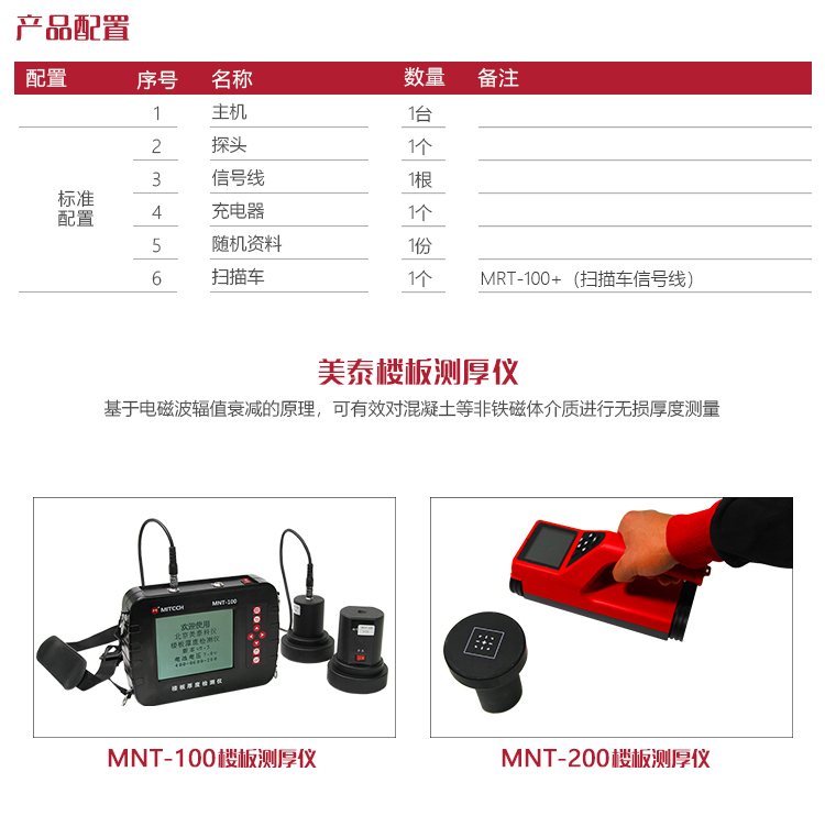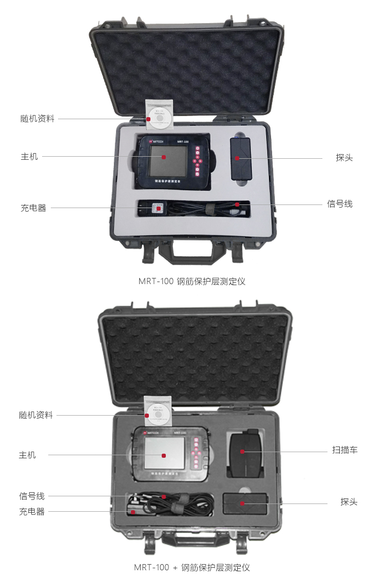 產(chǎn)品概述美泰MRT-100 / MRT-100 +鋼筋保護(hù)層測(cè)定儀,基于電磁感應(yīng)原理,可快速無損檢測(cè)鋼筋位置、鋼筋保護(hù)層厚度及鋼筋直徑。其測(cè)量速度快、測(cè)量精度高、性能穩(wěn)定可靠,具有布筋掃描功能(MRT-100 +),適用于對(duì)現(xiàn)有鋼筋混凝土工程及新建鋼筋混凝土結(jié)構(gòu)施工質(zhì)量的檢測(cè),也可對(duì)非磁性和非導(dǎo)電介質(zhì)中的磁性體及導(dǎo)電體的位置進(jìn)行檢測(cè),是一款專業(yè)多功能智能型精密無損檢測(cè)儀器。