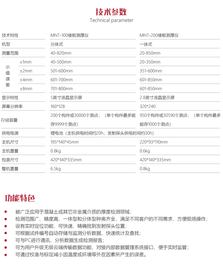 | 剖面測(cè)量功能 | MRT-100不支持;MRT-100+ 可支持圖形+數(shù)字顯示 |